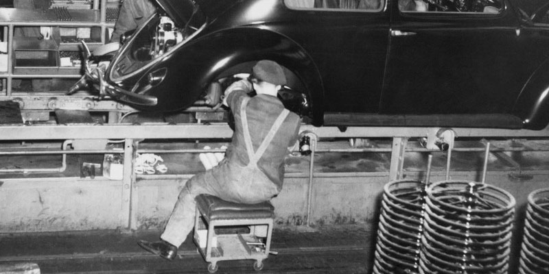 Then we measured how fast he put on those hubcaps, and we thought, maybe we can get him to do this in 12 seconds. Why? Not to create a more meaningful role for this man or woman, but because we wanted to make more money. We wanted to get our costs down so people would buy more cars. We were enamored with mass production and the wealth it created.